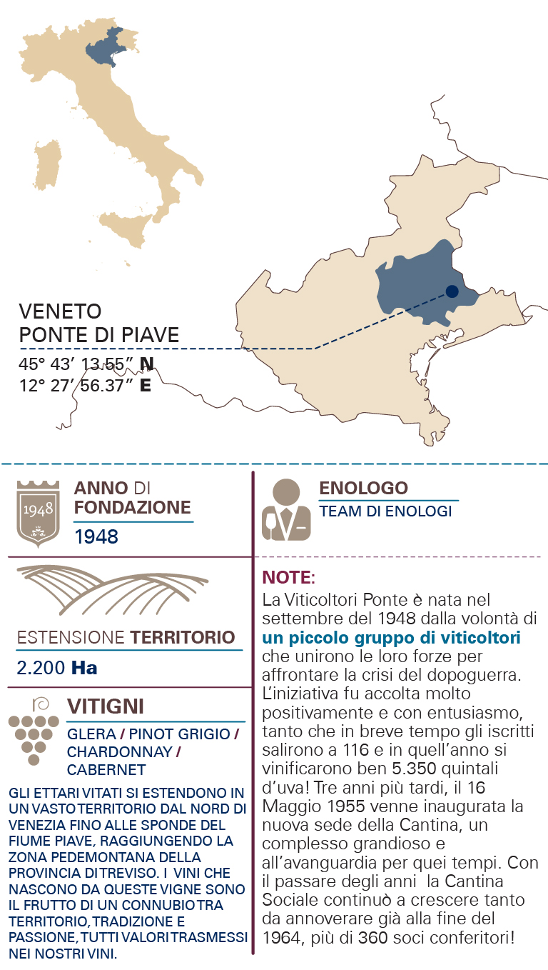 TIPOLOGIADOC Prosecco ZONA PRODUTTIVAArea Nord del Piave, Treviso. VITIGNO100% Glera TIPOLOGIA DEL TERRENOArgilloso VINIFICAZIONERaccolta delle uve a media maturazione. Selezione in cantina COLOREGiallo tenue con riflessi verdolini PROFUMOSentori di mela verde accompagnati da note esotiche e glicine bianco ABBINAMENTIAperitivi, antipasti, piatti di pesce SAPOREAl palato è fresco ed equilibrato, Acidità e mineralità sono perfettamente bilanciate