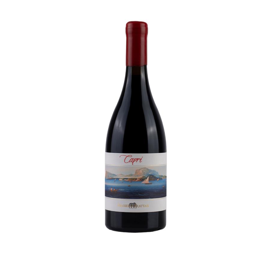 TIPOLOGIADOP Capri Rosso ZONA PRODUTTIVAIsola di Capri VITIGNO80% Piedirosso, 20% Aglianico e altre varietà TIPOLOGIA DEL TERRENOVulcanico su roccia dolomitica VINIFICAZIONEFermentazione in tini di castagno nuovi per 18/26 giorni a 24°/26°C; successivamente il vino, separato dalle fecce grossolane post malolattica, va in barrique nuove di castagno per un elevage di 6-8 mesi. SISTEMA DI ALLEVAMENTOPergola COLORERosso rubino con riflessi violacei PROFUMORaffinati profumi di prugna, visciole e cioccolata ABBINAMENTIDa abbinare a carne bianca e rossa SAPOREElegante e potente. Si presenta al gusto delicato e carnoso, molto longevo e si completa con fragranti note di menta, cannella e noce moscata